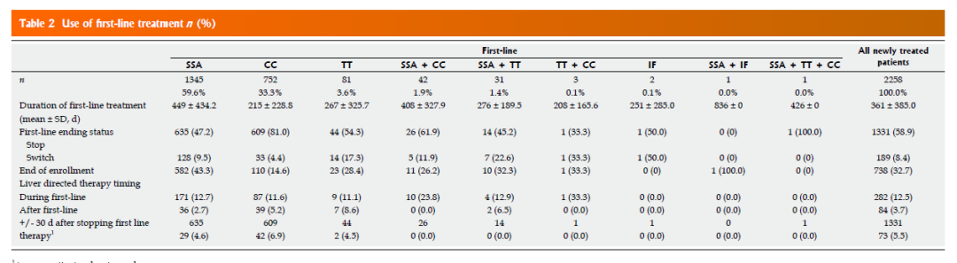 第二项研究评估了在癌症中心定期随访的患者,在长达30年的时间内的治疗模式。较长的随访持续时间,使我们能够观察到整个患者疗程中的治疗模式。SSA在推荐剂量下通常用作GI NET患者的初始治疗,并通常继续加量治疗或与其他治疗联合用于长期治疗。进一步证实,在三级转诊中心接受治疗的晚期GI NET患者的总生存期相对较长,并且这些患者常用多线治疗。