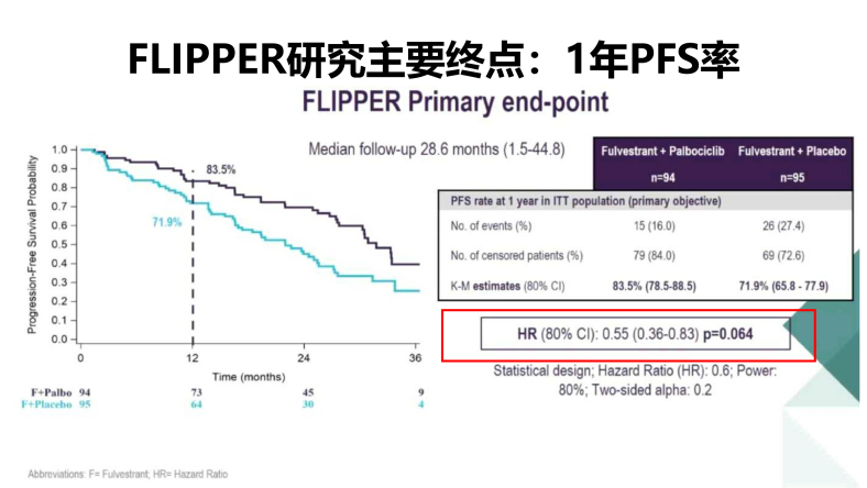 新增氟维司群+CDK4/6抑制剂为Ⅱ级推荐,主要基于Ⅱ期FLIPPER临床研究结果。该研究将189例患者以1:1比例随机分配至氟维司群(500 mg)/哌柏西利组(F/P)或氟维司群/安慰剂(F/PL)组。主要终点为1年PFS率(研究者根据RECIST 1.1评估)。2020年ESMO大会公布的结果显示,该研究达到了预设的主要终点:中位随访28.6个月时,F/P和F/PL组1年PFS率分别为83.5%和71.9%(HR=0.55,P=0.064)。该研究结果提示:在HR+/HER2-晚期乳腺癌患者的一线内分泌治疗中,CDK4/6抑制剂联合氟维司群较氟维司群单药具有PFS优势。基于该数据,此次指南更新在Ⅱ级推荐中以2A类证据添加了CDK4/6抑制剂联合氟维司群的治疗方案。