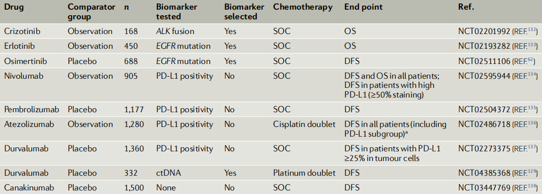 图2:非转移性NSCLC辅助治疗正在进行的Ⅲ期研究