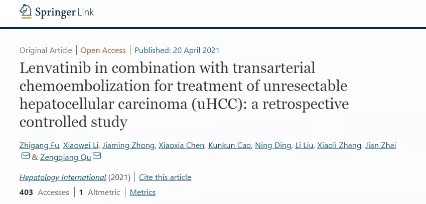 目前,经皮肝动脉化疗栓塞(TACE)仍是我国临床实践中广泛用于不可切除肝细胞癌(HCC)患者的治疗手段,而仑伐替尼则是肝癌一线治疗的推荐方案之一,此前尚无研究评价两种治疗手段联合使用的效果。近期,上海东方肝胆外科医院曲增强教授团队发表了最新研究数据,对比仑伐替尼+TACE或TACE单独使用的疗效和安全性,研究结果于Hepatology International发表,现整理如下。