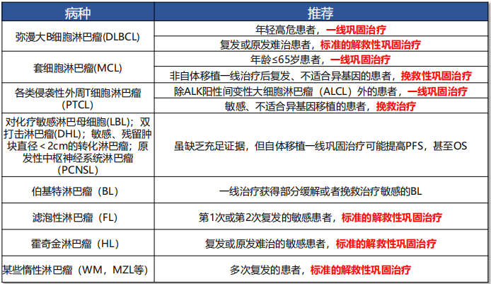 图1:NCCN指南中对于DLBCL中ASCT的推荐