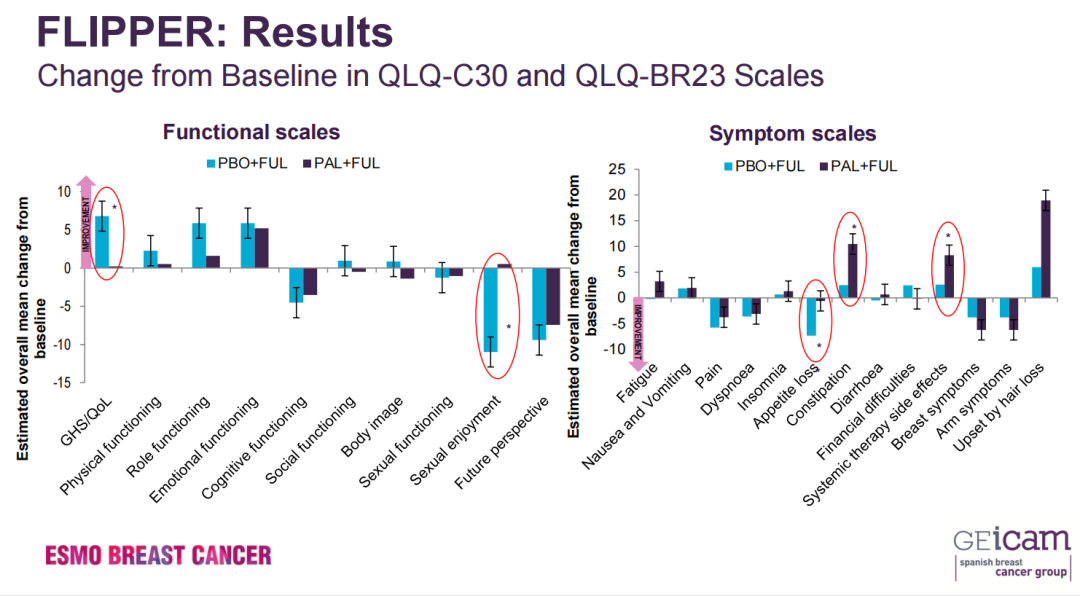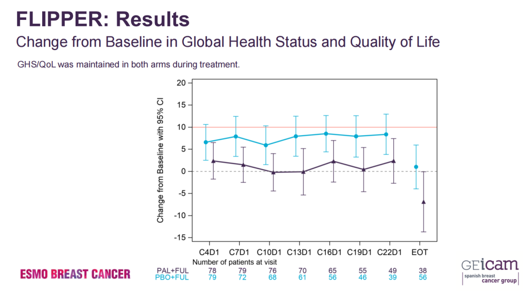 fulvestrant(FUL)/palbociclib(PAL)与FUL/安慰剂(PBO)治疗绝经后激素受体(HR)+/HER2-内分泌敏感型晚期乳腺癌(ABC)患者的生活质量(QoL):来自GEICAM/2014-12(FLIPPER)研究的结果