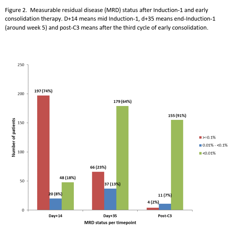 图2、Induction-1之后和早期巩固治疗后MRD状态