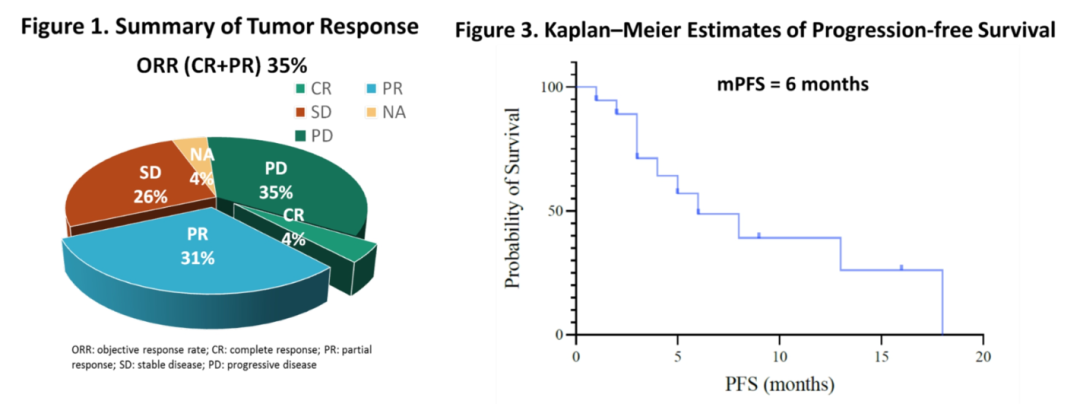 结果显示,在23例完成治疗的患者中,ORR为35%,其中有6例SD,1例CR,7例PR。中位PFS为6个月。