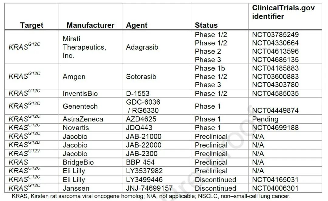 在NSCLC患者中,15%左右的患者携带KRAS基因突变,尤其以第12及13外显子的突变最为常见,包括G12C、G12V、G12S、G12D及G13D等突变。