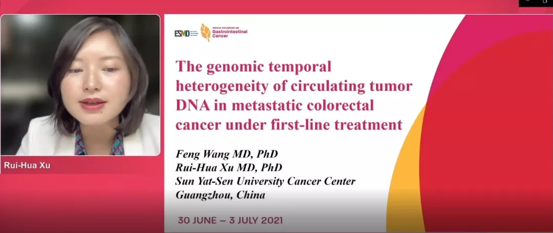 编者按:6月30日至7月3日,ESMO第23届世界胃肠道肿瘤大会(WCGIC 2021)虚拟会议召开。本次会议上,中山大学肿瘤防治中心徐瑞华教授团队的一项研究(摘要SO-23)入选大会的简短口头报告,揭示了一线治疗下转移性结直肠癌循环肿瘤DNA的基因组时间异质性,研究发现RAS/BRAF突变状态的改变可以产生生存结局的巨大变化,应在临床特别关注。北京时间7月2日下午,中山大学肿瘤防治中心王峰教授代表团队报告了该研究。