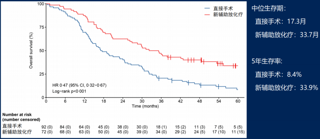 长期随访数据证实,术前新辅助放化疗可改善可手术胰腺癌患者的生存
