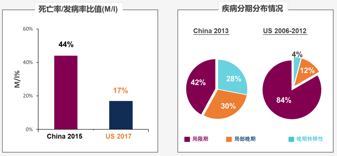 Δ中国和美国前列腺癌死亡率/发病率比值和疾病分期分布情况[6-8]