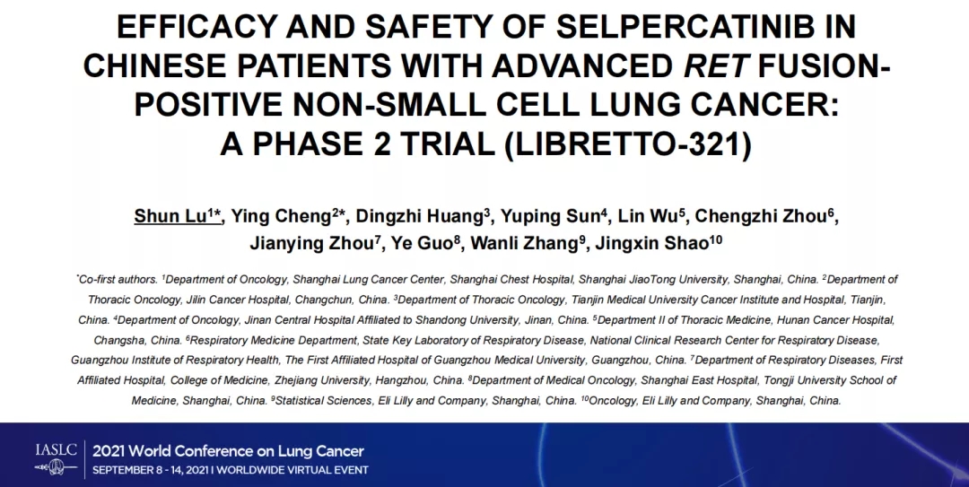 WCLC2021丨LIBRETTO-321验证RET抑制剂Selpercatinib在中国人群的疗效和安全性