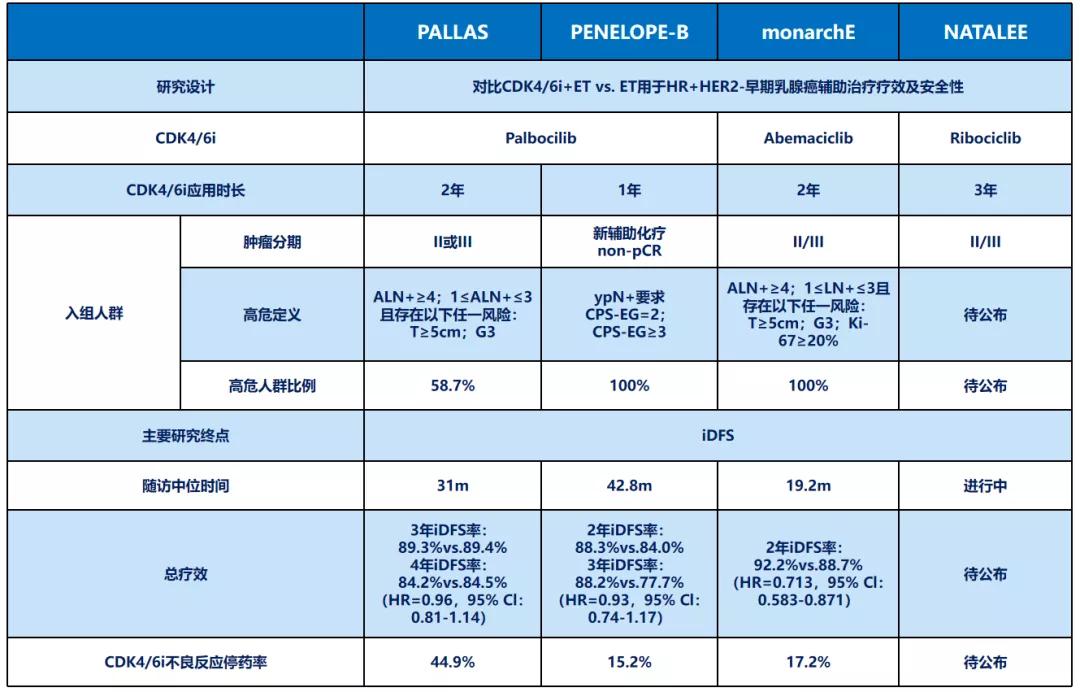 二、CDK4/6i强化HR+/HER2-辅助内分泌治疗研究对比
