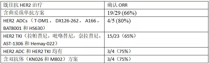 表1. 既往不同抗HER2治疗方案患者经ARX788 1.5 mg/kg Q3W治疗的ORR
