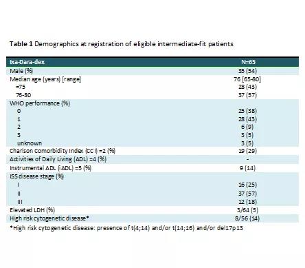 初步结果表明,在这一特定人群中,患有复发难治的高龄体弱患者中,伊沙佐米和达雷木单抗联合使用(不含地塞米松)具有良好的安全性,其中近三分之一的患者具有高风险细胞遗传学。