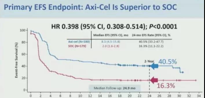 图2:axi-cel组的中位EFS及2年EFS均优于SOC组