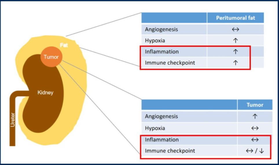 最后,Ghatalia教授认为肥胖是一种预测指标。特别是在包括IMDC、外部验证队列和COMPARZ试验在内的许多队列中,肥胖与接受酪氨酸激酶抑制剂治疗患者的长期生存期延长相关。此外,肥胖患者的血管生成评分平均更高。增加 BMI(BMI≥25)与改善对免疫检查点抑制的反应有关。肾周脂肪中较高的炎症或许可以解释这种较大的免疫反应。
