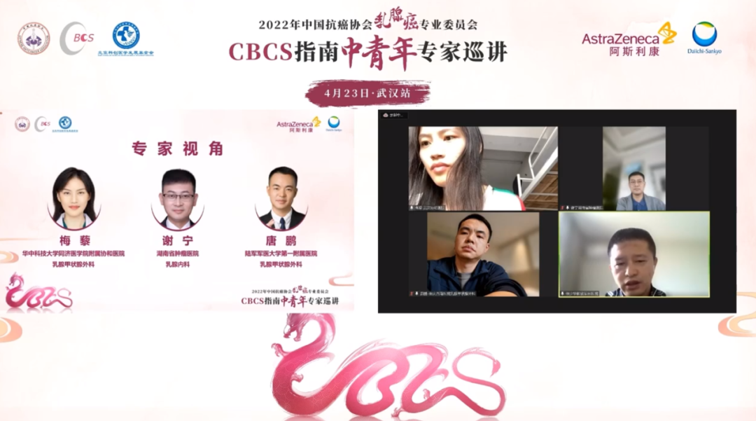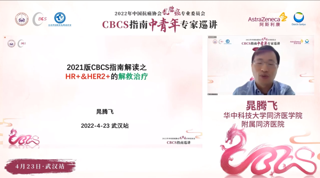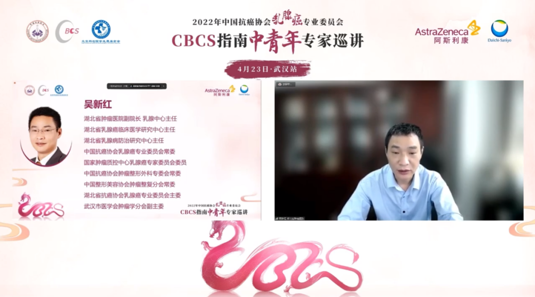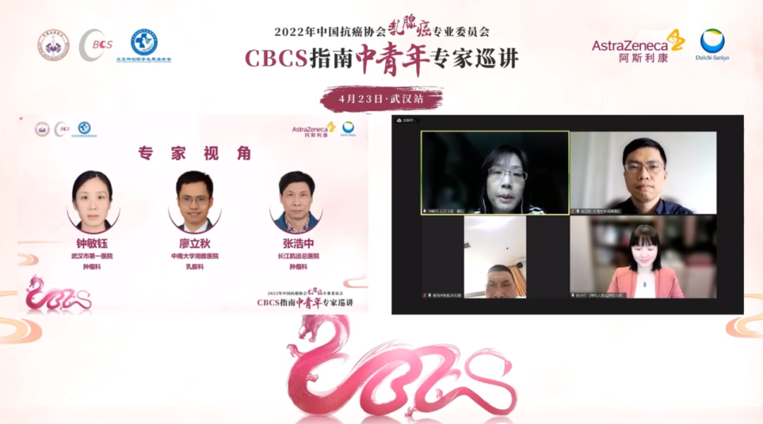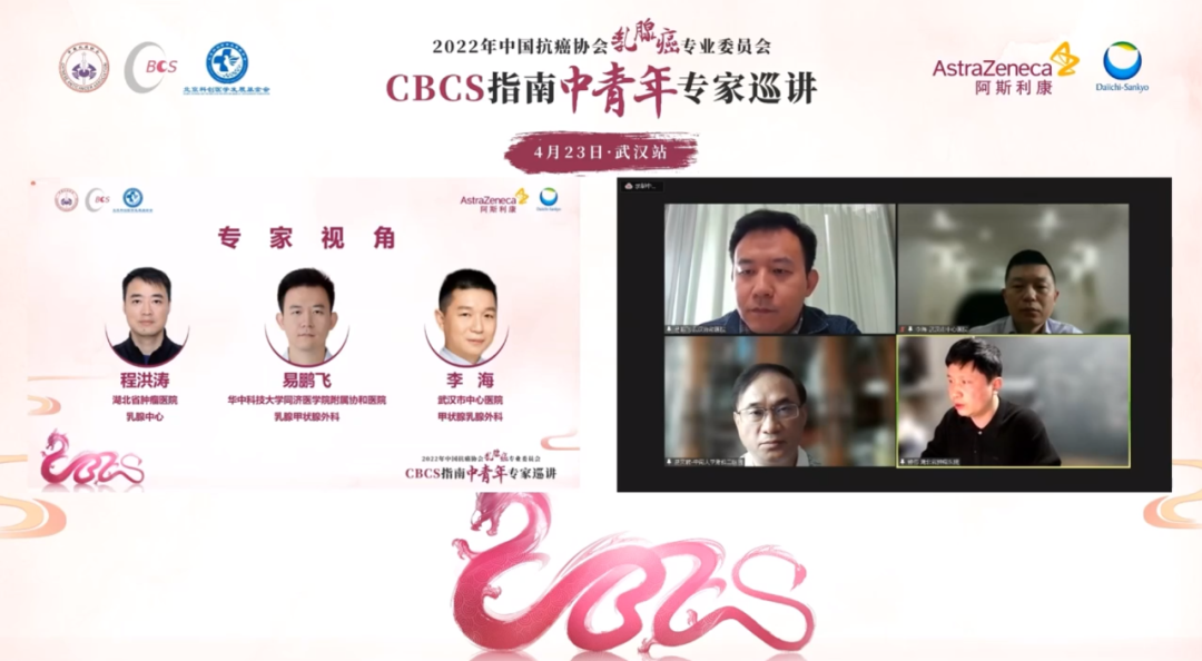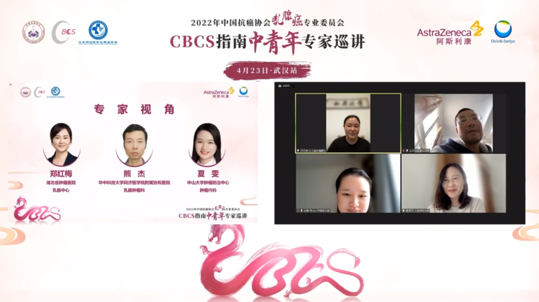 编者按:2022年中国抗癌协会乳腺癌专业委员会CBCS指南中青年专家巡讲——武汉站于4月23日圆满落幕。本次会议由中国抗癌协会乳腺癌专业委员会、北京科创医学发展基金会主办,华中科技大学同济医学院附属协和医院承办。在名誉主席黄韬教授、程晶教授,飞行主席郝春芳教授和云端主席余科达教授,特邀主席吴新红教授、李兴睿教授、姚峰教授,执行主席赵艳霞教授组成的大会主席团带领下,上半场与会专家就CBCS指南内容进行了解读和讨论,下半场各位专家学者就各亚型乳腺癌患者的治疗进行了病例讨论与分享。