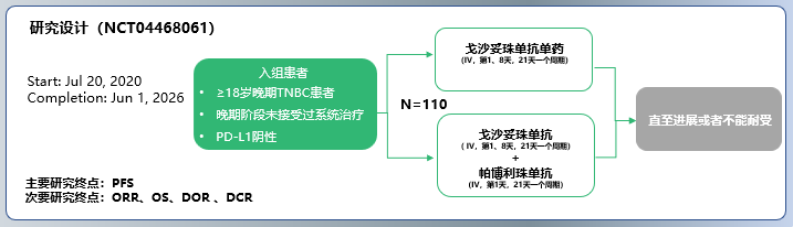 SASCIA(NCT04595565)是一项正在进行的Ⅲ期研究,入组的患者为HER2阴性,新辅助化疗后肿瘤残留,或激素受体(HR)阳性且伴有CPS+EG评分≥3,或激素受体(HR)阳性CPS+EG评分2但新辅助化疗后ypN+,随机分组接受术后辅助强化sacituzumab govitecan或医生选择的治疗(TPC,卡培他滨,铂,观察)。2022年ESMO大会上,首次展示了预先计划的安全性中期分析的结果。