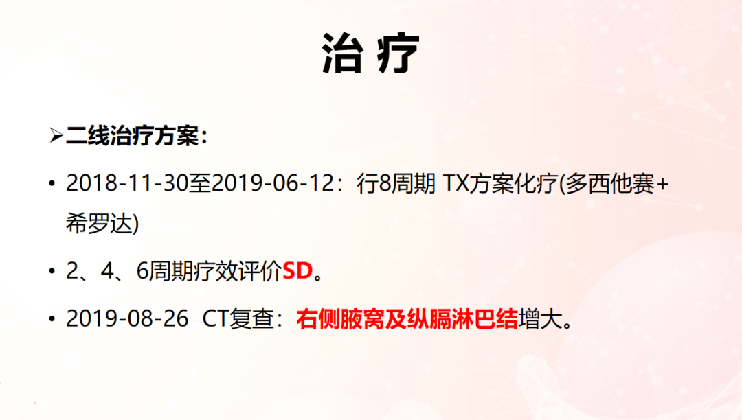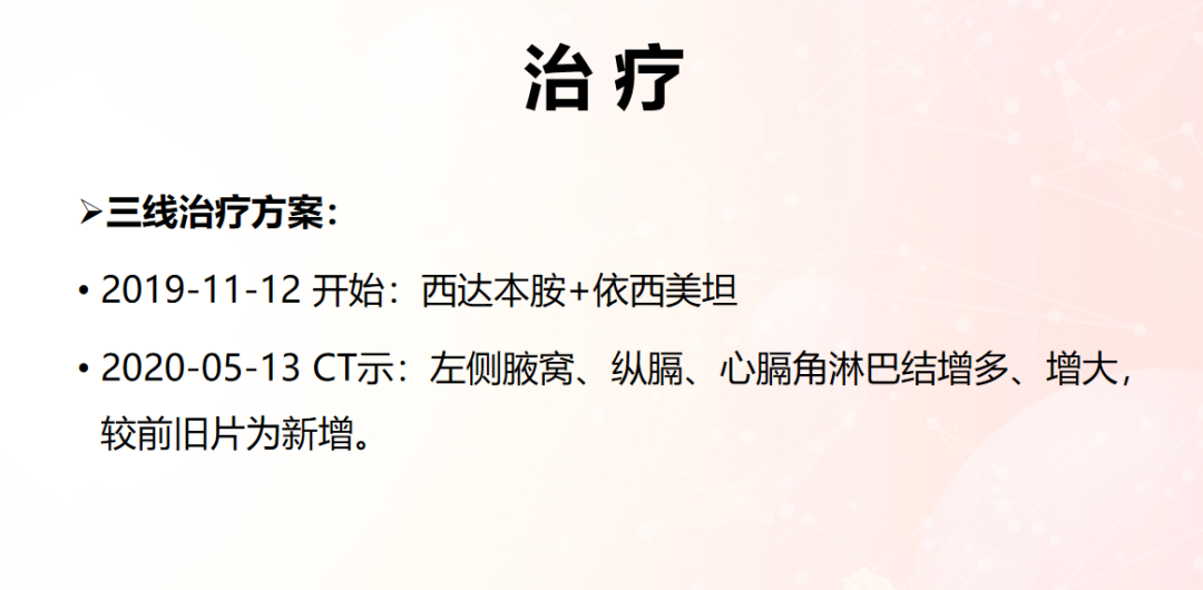 闫敏教授:DS-8201目前也在进行针对HER2低表达人群的研究,我们也是参研中心之一,也在等待具体数据的公布。现在也有一些数据证明ADC药物在HER2低表达人群的治疗中有一定的潜力,可以尝试。对于该例患者,我也建议其进行多基因检测,如BRCA1/2基因检测、PI3K检测等,以进一步选择其他治疗药物。