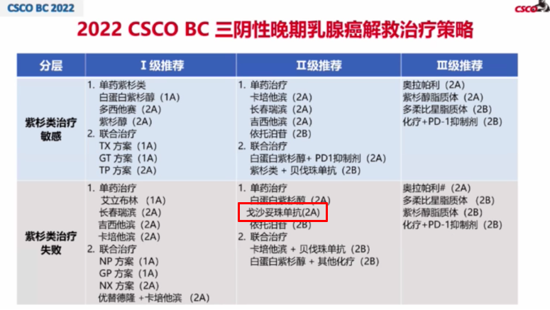 [10] Hurvtiz A, Bardia A, Punie K, et al. Sacituzumab govitecan (SG) efficacy in patients with metastatic triple-negative breast cnacer (mTNBC) by HER2 immunohistochemistry (IHC) status: findings from the phase 3 ASCENT study. Presented at: European Society for Medical Oncology Breast Cancer Congress 2022. May 3-5, 2022; Berlin, Germany