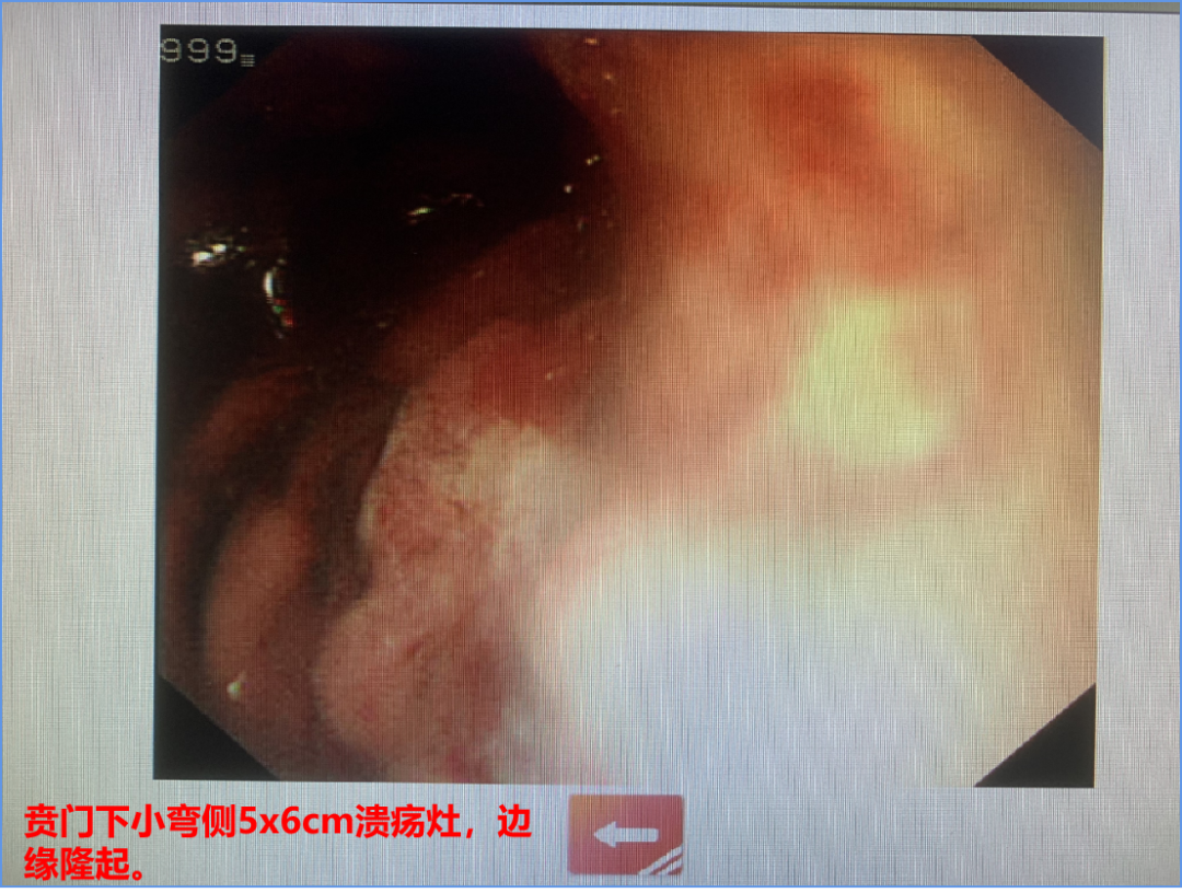 2022-1-14胃镜提示贲门块状物增生,贲门下小弯侧5×6 cm溃疡灶,边缘隆起。诊断意见:贲门胃体癌。