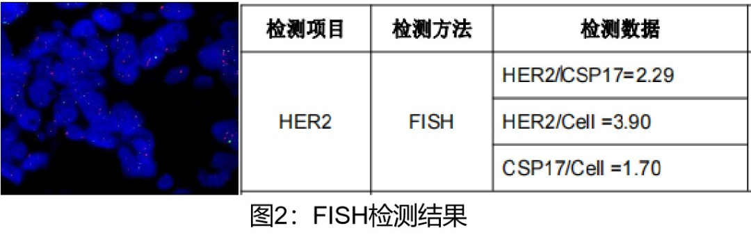 基因检测:MSS,PD-L1阴性 CPS=0;HER2(FISH)阳性。