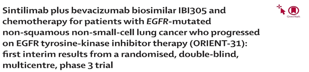 对于携带EGFR敏感突变的患者,靶向治疗是标准的一线治疗方案。患者耐药后,目前的标准治疗是含铂双药化疗,免疫联合化疗或进一步联合抗血管生成治疗的地位缺乏随机对照研究。近期,Lancet Oncology杂志发表了这一领域的首个随机对照研究——ORIENT-31研究,杂志配发同期评论,对这篇文章进行深入讨论。