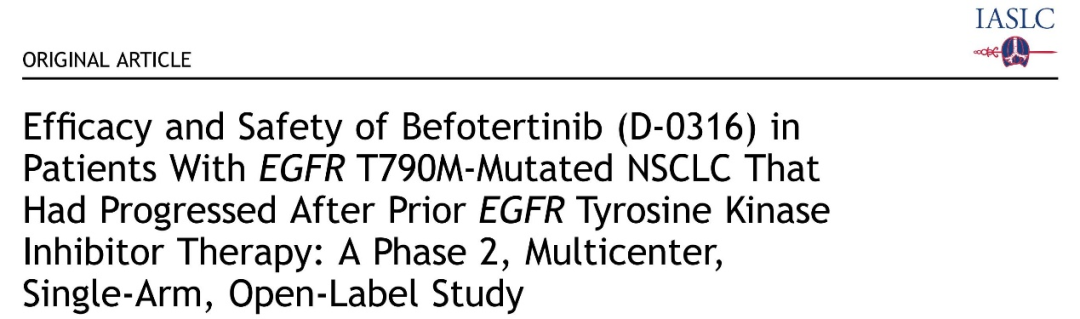 EGFR这条通路的药物研发可算得上是肺癌精准治疗的典范,基于标志物的药物设计及治疗策略的优化已经大大改善了这部分患者的预后。目前,一代和二代TKI类药物仍然是这部分患者的标准治疗选择之一,而继发性T790M突变是一代/二代TKI耐药的主要原因。针对该突变,目前国内已经有几款三代TKI获批临床,中位PFS均在10-12个月之间。近期,另一款新的三代TKI贝福替尼的注册研究数据在Journal of Thoracic Oncology公布。值得注意的是,贝福替尼治疗继发性T790M突变的患者,独立评审委员会评估的中位PFS达到了16.6个月,是目前为止最好的PFS数据。