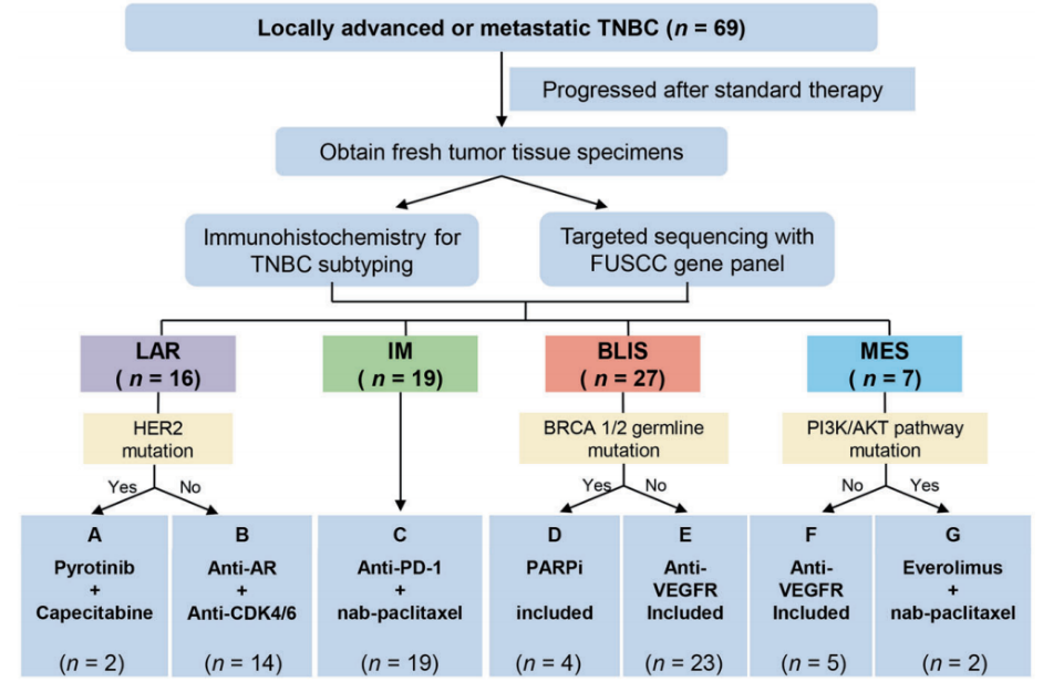 ② HER2阴性的LAR型(B臂):用雄激素受体拮抗剂+CDK4/6抑制剂治疗;