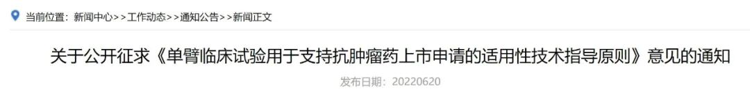 政策解读:单臂临床试验用于支持抗肿瘤药上市申请的适用性技术指导原则