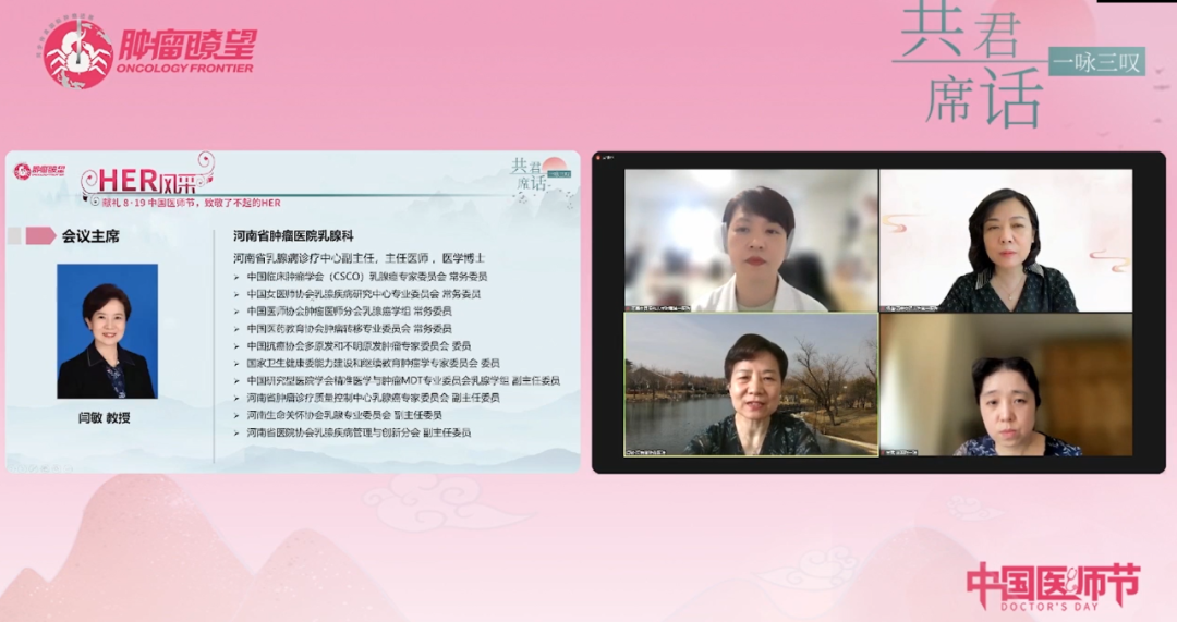 编者按:2022年8月19日是第五个“中国医师节”,在这个特殊的节日里,《肿瘤瞭望》特别邀请数位“撑起半边天”的女性医务工作者,开展了“HER风采”主题学术研讨会。河南省肿瘤医院闫敏教授担任本次大会主席,西安交通大学第一附属医院杨谨教授、重庆医科大学附属第一医院甘露教授进行了精彩授课,并与浙江省肿瘤医院陈占红教授、复旦大学附属肿瘤医院王磊苹教授、中国医科大学附属第一医院石晶教授共同就DESTINY-Breast03、DESTINY-Breast04研究进展进行了“杏林玫瑰面对面”的互动讨论,本文就相关内容进行回顾。
