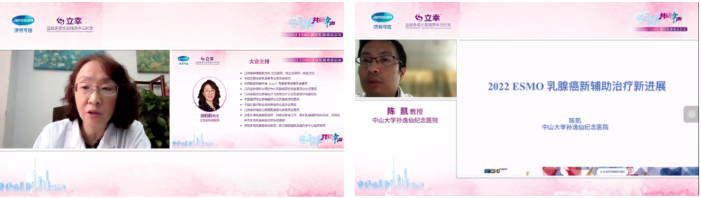 在江苏省肿瘤医院张莉莉教授主持下,中山大学孙逸仙纪念医院陈凯教授报告了2022年ESMO大会乳腺癌新辅助治疗的研究进展。