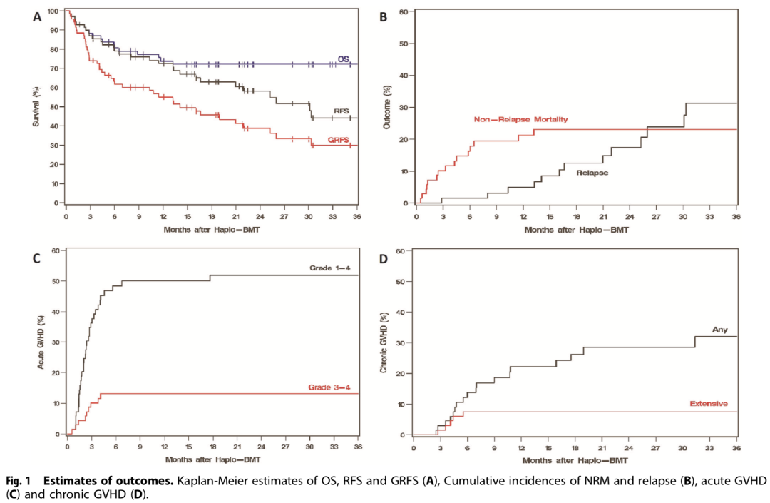 Kunte S,Rybicki L,Viswabandya A,Tamari R,Bashey A,Keyzner A,Iqbal M,Grunwald MR,Dholaria B,Elmariah H,Ozga M,Singh A,Abedin S,DeZern AE,Jones RJ,Gupta V,Gerds AT,Jain T.Allogeneic blood or marrow transplantation with haploidentical donor and post-transplantation cyclophosphamide in patients with myelofibrosis:a multicenter study.Leukemia.2022 Mar;36(3):856-864.doi:10.1038/s41375-021-01449-1.Epub 2021 Oct 18.PMID:34663912.