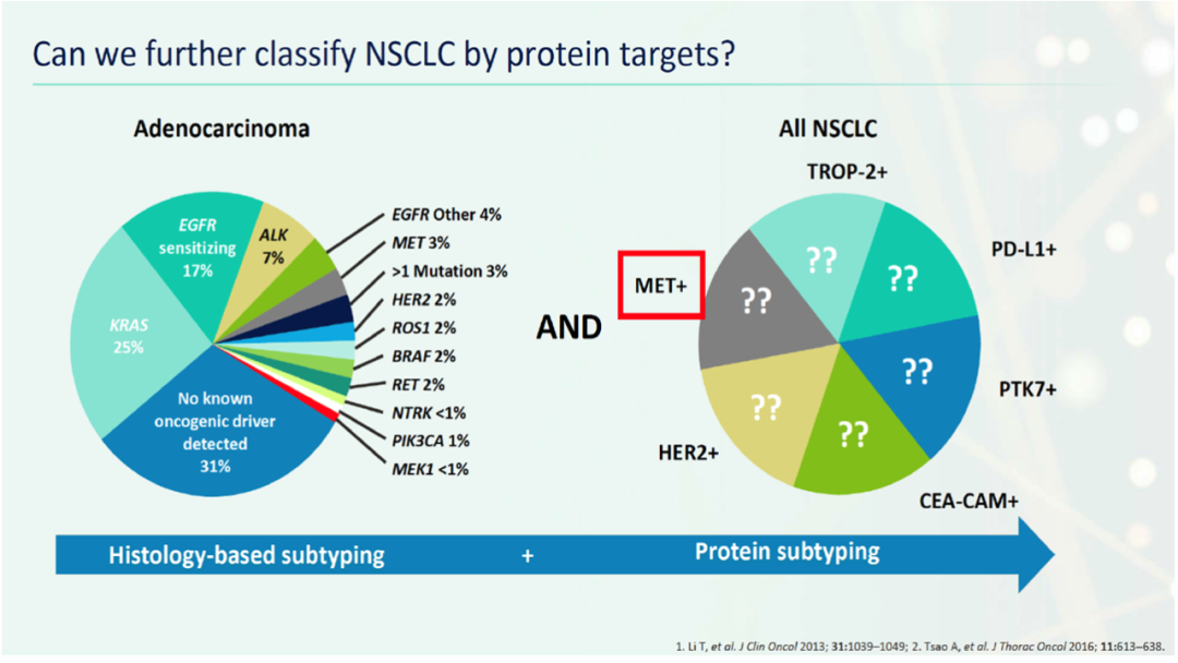 NSCLC中存在间充质向上皮转化(MET)基因的一系列变化,包括激活突变(METex 14)、基因扩增和蛋白过表达。