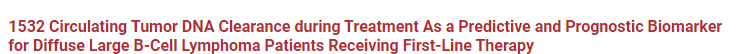 编者按:2022年12月10~13日,第64届美国血液学年会(ASH)在美国路易斯安那州新奥尔良隆重召开,作为全球血液领域中规模最大和内容最为全面的血液学顶级学术盛会,本届ASH一如既往地吸引了众多专家及学者的关注。在本次ASH大会上,北京大学肿瘤医院宋玉琴教授团队的一项研究(abstract 1532)探索了外周血循环肿瘤DNA(ctDNA)清除率在弥漫大B细胞淋巴瘤(DLBCL)一线治疗后疗效及预后评估中的价值,值得深入关注与学习,为此《肿瘤瞭望》特整理该研究内容,供读者参考。