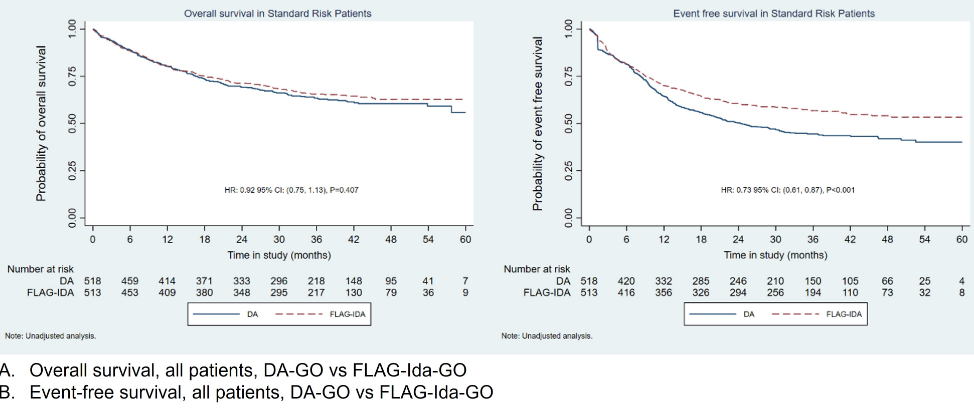 FLAG-Ida联合吉妥珠单抗方案改善初诊AML年轻患者EFS,并使NPM1和FLT3突变亚组总生存获益:英国NCRI AML19试验结果