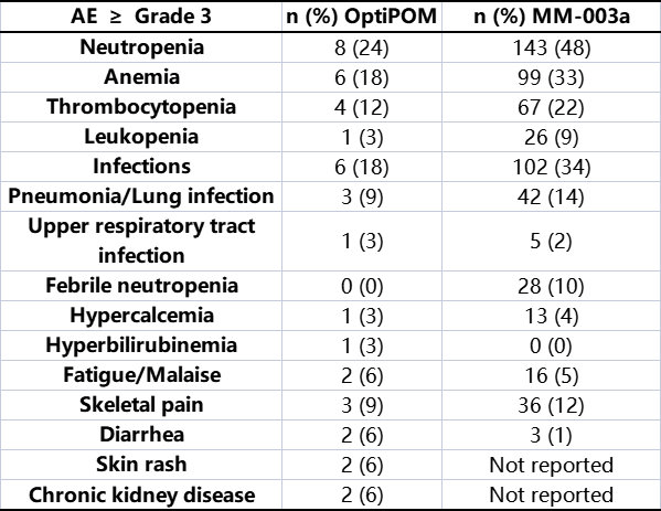 表1 OptiPOM与MM-003研究中≥3级的治疗相关不良事件
