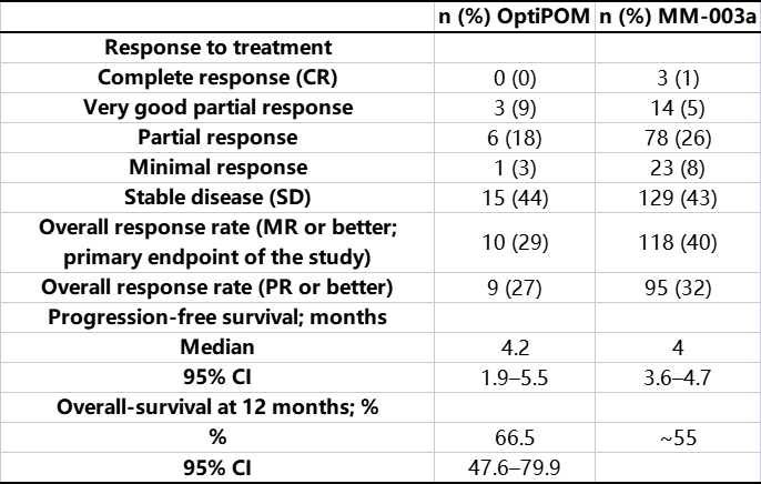 表2 OptiPOM与MM-003研究中的缓解率和存活率