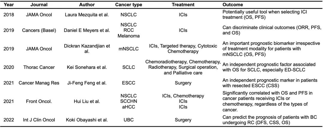 2018年Laura等人在JAMA oncology发表的文章首次基于dNLR≥3和LDH高于上限值这两个因素创立了LIPI评分(LIPI好、中和差三组分别对应0、1和2个因素),研究基于多中心大样本量数据证实LIPI评分与晚期非小细胞肺癌免疫治疗生存预后的相关性。随后LIPI这一指标的预测效果被证实不仅局限于免疫治疗,对于接受靶向治疗或化疗的肺癌患者也具有较好的预测效果。甚至后续进一步的研究发现LIPI的预测价值不仅局限于肺癌,LIPI在胃癌、食管癌和膀胱癌等其它瘤种中也具有较好的预测价值,截至目前,还没有研究探索LIPI这一指标在前列腺癌领域的预后价值。