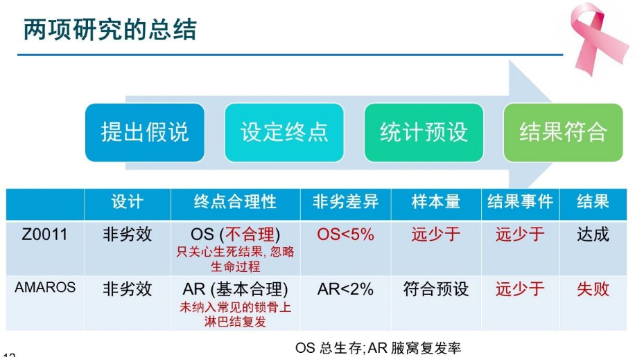 余科达教授提到,优秀的循证医学证据应符合以下标准:1、提出的假说合理;2、设定的终点能说明问题;3、统计预设客观科学;4、研究结果是否达到,是否前后一致。随后,针对这几条标准,余科达教授对Z0011研究和AMAROS研究进行了全面的分析。