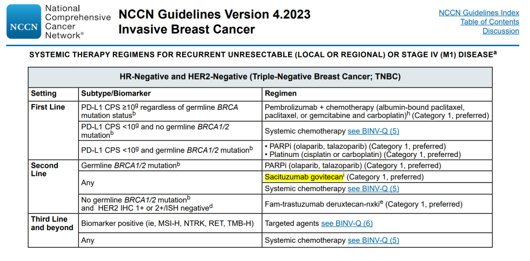 △NCCN乳腺癌指南2023.v4推荐SG二线治疗TNBC[4]