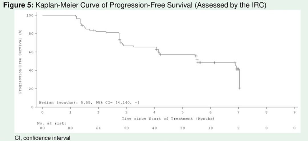 中位到疾病缓解时间(mTTR)为1.51个月,中位缓解持续时间(mDOR)为5.59个月(95%CI:5.585-NA),mPFS 5.55个月(95%CI:4.140-NA),6个月PFS率为48.3%(95%CI:36.15-59.51),9个月OS率68.0%,mOS尚不成熟。安全性方面,到数据截止日患者接受了中位8周期的SG治疗,中位治疗时间是5.62个月,SG最常见的≥3级治疗相关不良反应同样是血液毒性,包括中性粒细胞减少(62.5%)、白细胞减少(48.8%)和贫血(21.3%)。该研究的疗效和安全性与ASCENT研究保持一致,再一次确立了SG在中国TNBC患者的优异疗效,其更多疗效数据值得期待[10]。