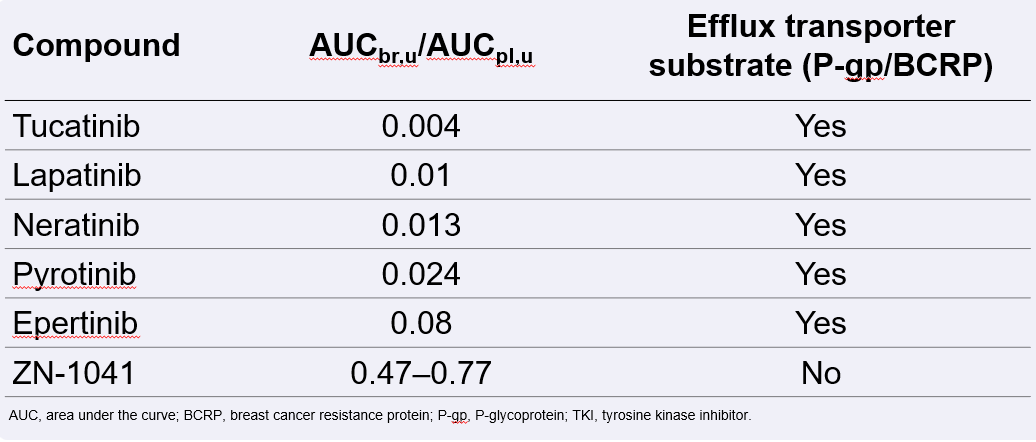 1.评估ZN-1041和其他已获批的HER2 TKIs的脑渗透能力。