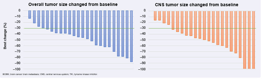 4.主要研究目标是安全性和耐受性。次要研究目标为药代动力学(PK)和抗肿瘤疗效,包括根据RECIST 1.1标准评估的客观缓解率(ORR)和根据RANO-BM标准评估的颅内ORR(iORR)。