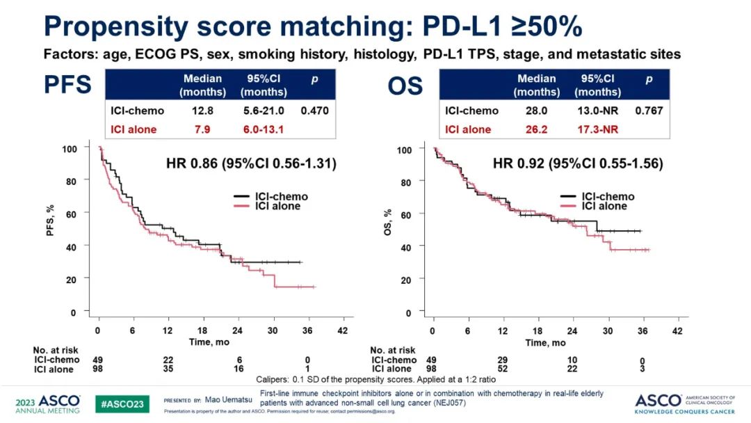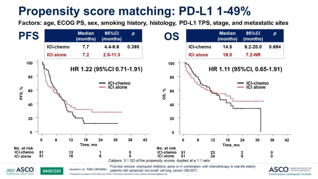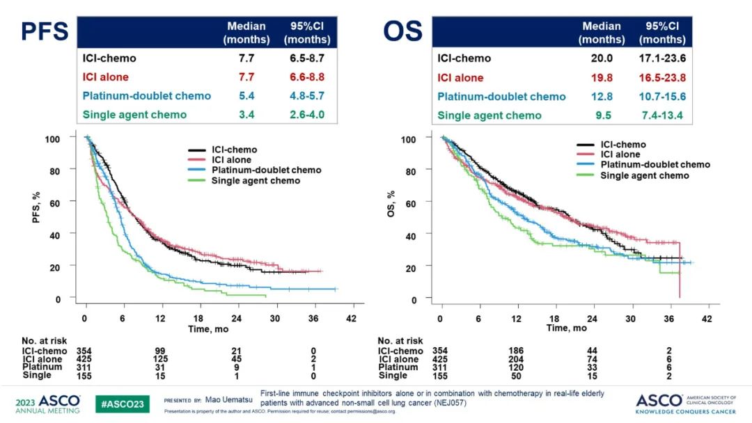 First-line immune checkpoint inhibitors alone or in combination with chemotherapy in real-life elderly patients with advanced non-small cell lung cancer (NEJ057).Abstract 9012, Rapid Abstract Session, 2023 ASCO.