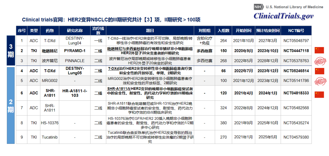 图1:治疗HER2突变型NSCLC药物的前瞻性临床试验