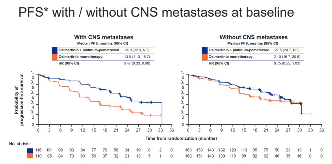 在所有预先设定的亚组中都观察到了具有临床意义的PFS获益,包括性别、种族、EGFR突变类型、诊断时的年龄、吸烟史和基线时的中枢神经系统(CNS)转移状态。