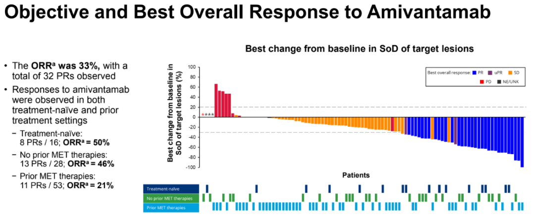 在初治患者、未经MET抑制剂治疗的经治患者和既往接受过MET抑制剂的患者队列中,ORR分别为50%、46%和21%。