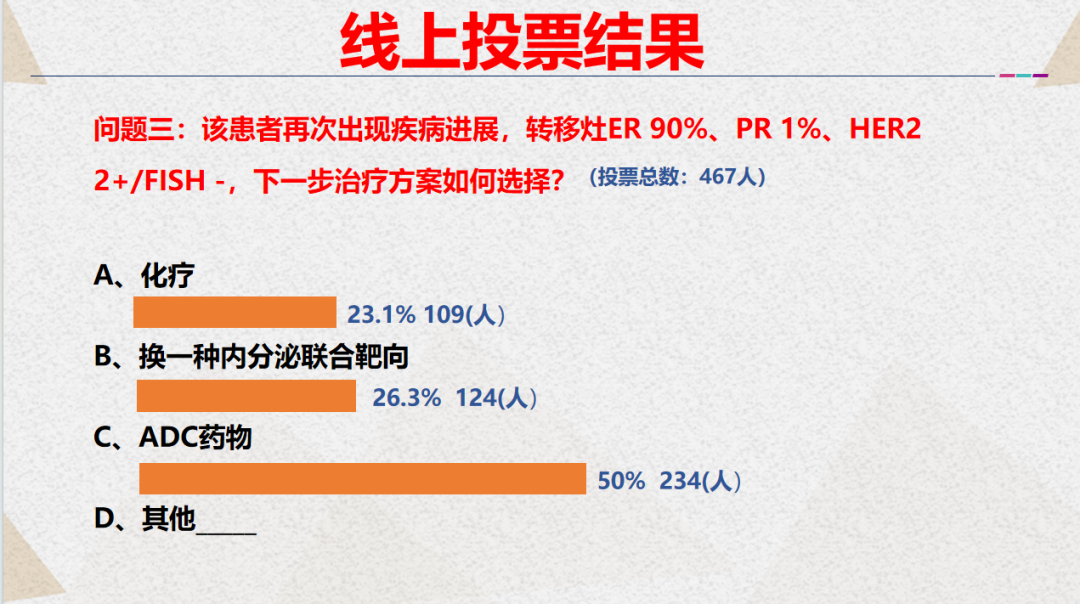 网上医生投票结果揭晓:50%的医生网上投票建议选择ADC药物治疗。