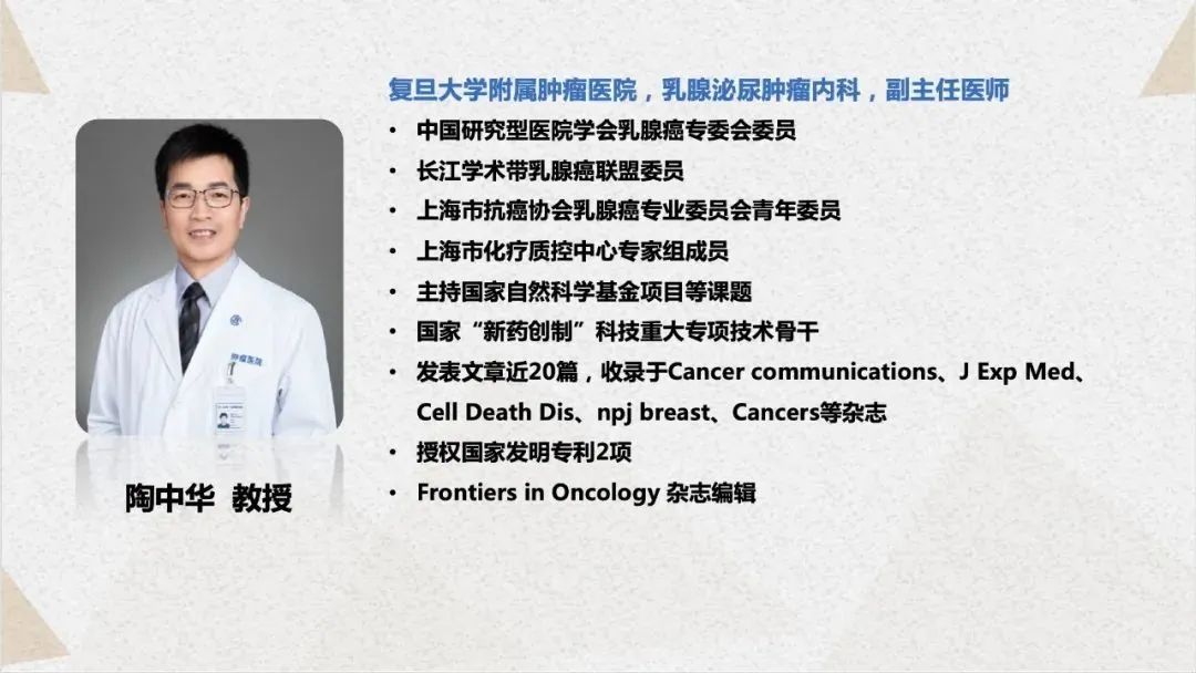 陶中华教授:目前我们没有足够的循证医学证据来支持这种假设,但如果临床中碰到这样的病例,在多学科的配合下,挑选一部分患者来做这件事是有可能性的。如您所说,患者存在肿瘤异质性,因此一部分患者确实能在好药先用的情况下实现治疗获益,对于内分泌治疗失败的患者优先选择DS-8201,能为患者带来更好的治疗信心,为医生提供更好的治疗选择。但是我认为这种情况只能进行尝试,没有充足的循证医学证据作为支撑。此外,对于初诊Ⅳ期的乳腺癌患者,有可能出现远处转移,但也可能出现寡转移,因此在一开始治疗中应用较强的治疗策略可能比按部就班进行治疗有较好的治疗结果。