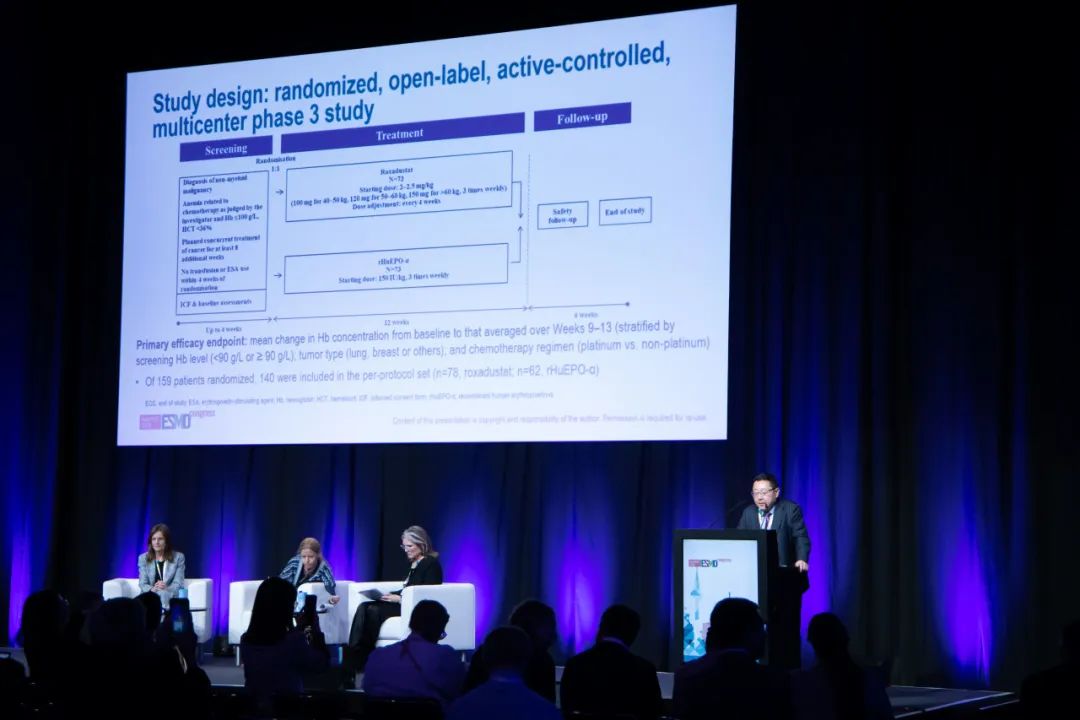 《肿瘤瞭望》:在本次ESMO大会中,您分享了一项罗沙司他治疗非髓性肿瘤CIA的Ⅲ期临床研究(LBA96),请介绍一下该研究的临床设计及主要结果。