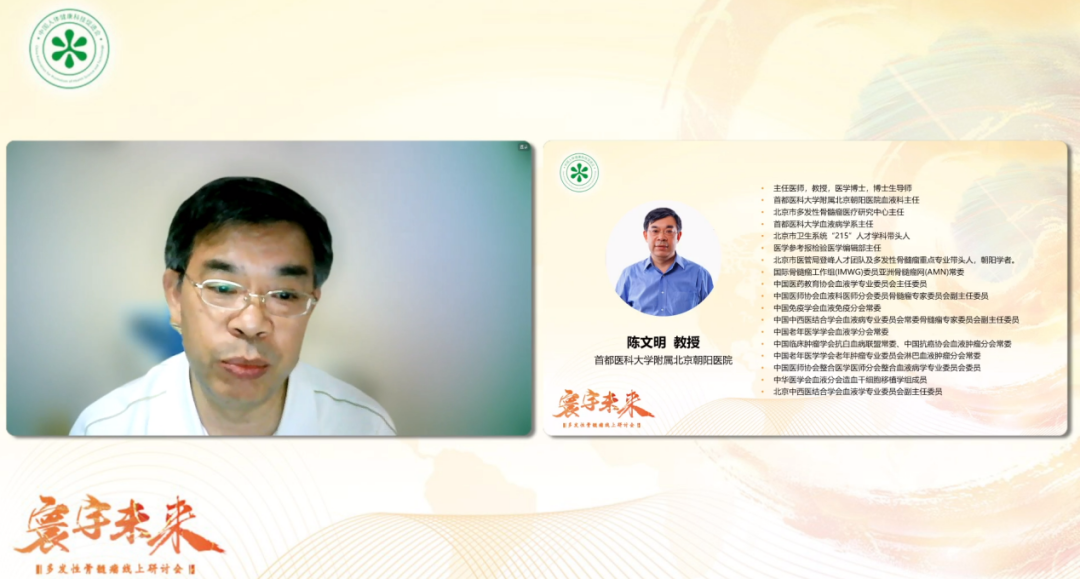 大咖云集谋实践,放眼未来谱华章。2023年11月2日,“寰宇未来—多发性骨髓瘤线上研讨会”在云端成功召开。本期会议在大会主席首都医科大学附属北京朝阳医院陈文明教授的主持下,多位国际和国内知名学者共聚云端,探讨多发性骨髓瘤(MM)治疗领域的最新诊疗理念,并针对临床医生最关心的问题开展了深入交流与碰撞。